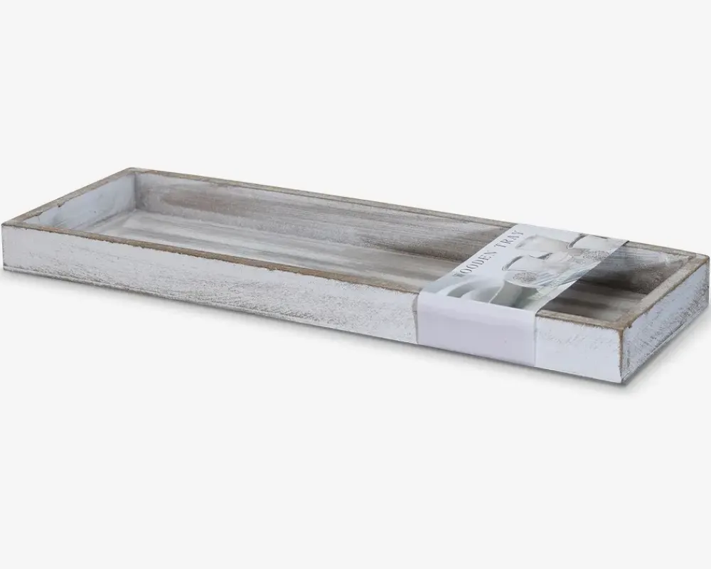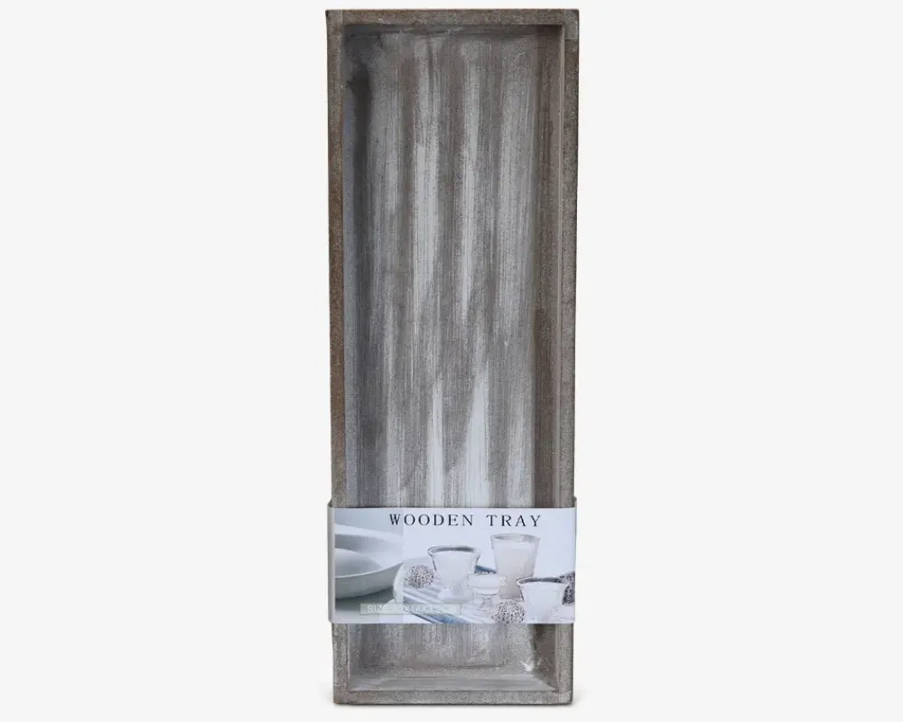 Denne stilrene bakke i grå træ tilføjer både funktionalitet og æstetik til dit hjem. Med sine enkle linjer og det tidløse grå træværk, er den perfekt til servering, opbevaring eller som dekorativt element på bordet, hylden eller stuebordet.