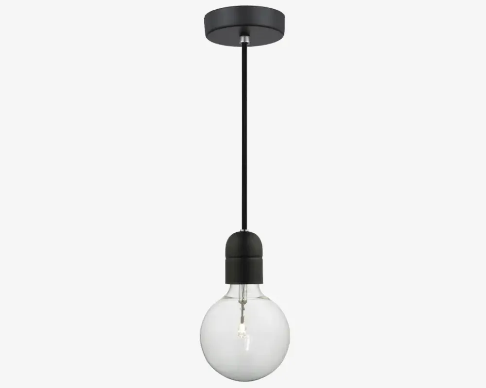 Fatningssæt i sort metal m. sort stofledning. Du kan med denne løsning selv bestemme, om du vil have et råt look, ved kun at ophænge en pære. Men du kan selvfølgelig også anvende fatningssættet sammen med en flot skærm, som du også kan finde i vores store udvalg.•Farve: Sort•Fatning: E27 max 40W•Ledningslængde i cm: 200