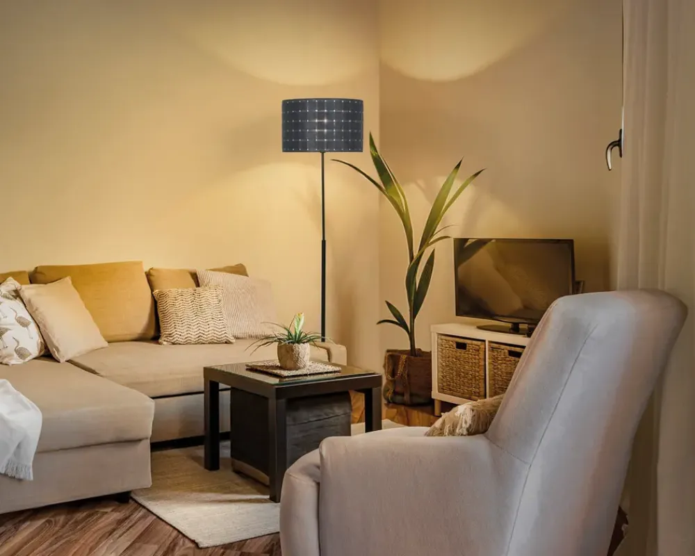 Gulvlampe fra Ledvance, der har et unikt og moderne design. Lampen er fremstillet af vævet filt, hvilket giver et anderledes og stilfuldt udtryk, der skiller sig ud i hjemmet. Det vævede materiale skaber en varm og behagelig belysning, som både er funktionel og stemningsskabende. Lampen kan placeres flere steder i hjemmet, for eksempel ved i stuen eller på kontoret.