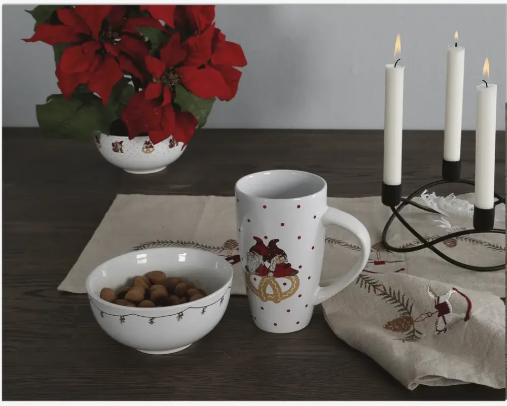 Få varmen i de kolde tider, med dette dejlig store julekrus med nisser på, med masser af plads til f.eks. varm kakao og skumfiduser. • Mål i cm: H.15,3