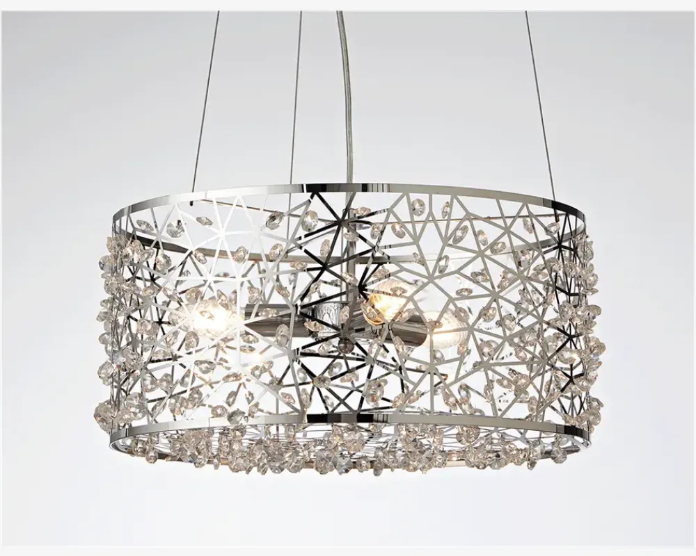 City-pendlen er en smuk lampe, som på en samme tid skaber blikfang og flot belysning gennem lampens mange krystaller.Anvend evt. lampen over spisebordet eller lys stuen op på en ny moderne måde.• Mål i cm: Ø.42 x H.20• Farve: Sølv• Materiale: Metal• Lyskilde: E14 max 40W (3 stk.)• Ledningslængde: 210cm• Inkl. lyskilde: Nej• IP-kode: IP20• Dæmpbar: Nej