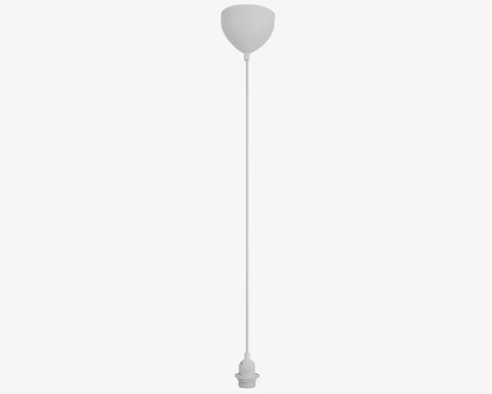 Pendelophæng med en 2 meter lang ledning, en baldakin og en E27-fatning. Fatningssættet kan kombineres med forskellige lampeskærme fra vores sortiment, så du kan skabe den perfekte belysning til dit hjem.
