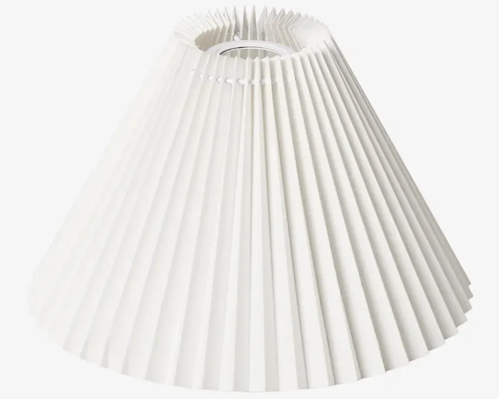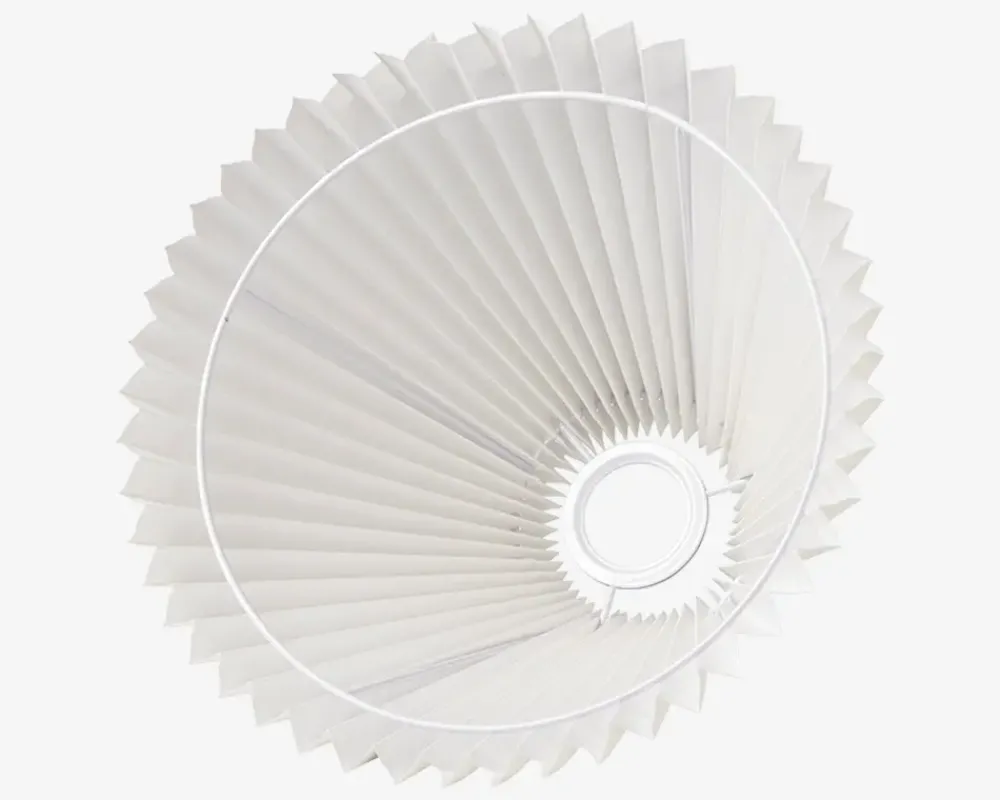 Emma Piso er en lampeskærm i hvid plissé, der tilfører et tidløst og let udtryk til enhver lampe. Den klassiske foldede struktur spreder lyset blødt og behageligt, hvilket skaber en hyggelig stemning i rummet. Skærmen passer perfekt til både bord- og gulvlamper.