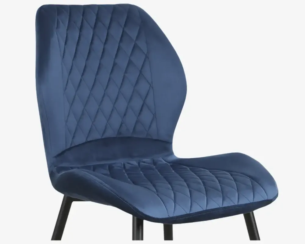 En smart lille spisestuestol som findes i flere farver. Spisestolen tilbydes til en billig pris, dog sælges den kun i pakker af 4 stk. Stolen er fremstillet med sæde og ryg i forskellige møbelstoffer, her i en blå velour, mens de sort lakerede ben er fremstillet i stål. Stolen giver en god siddekomfort, med masser af mulighed for at sidde varieret selv under de længere middage.Stolen kræver ingen vedligeholdelse, og rengøres med en klud vredet op i rent vand. Stolen sælges kun 4 stk´s og usamlet, men den samles nemt hvis du følger den vedlagte samlevejledning.