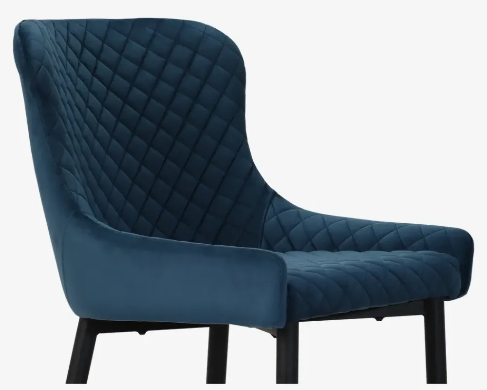 Flot spisestuestol som både fremstår klassisk og moderne på samme tid. Du får her en stol som både tilbyder en god fast siddekomfort, samtidig med at den har et flot design udtryk, som gør at den vil lyse op i mange indretninger. Spisestolen findes i 3 flotte farver, og vil derfor kunne bruges i mange forskellige sammenhænge både hvad angår stil, og indretning.Stolen er fremstillet i velour, mens benene er i sort lakeret stål. Stolen kræver ingen vedligeholdelse, og rengøringen foretages nemt, med en klud vredet op i rent vand. Eventuelt støv eller fnuller kan nem fjernes med en fnugrulle eller en støvsuger.Stolen leveres usamlet men samles uden problemer, hvis du benytter den medfølgende samlevejledning, spisebordsstolen leveres i pakker af 2 stk.