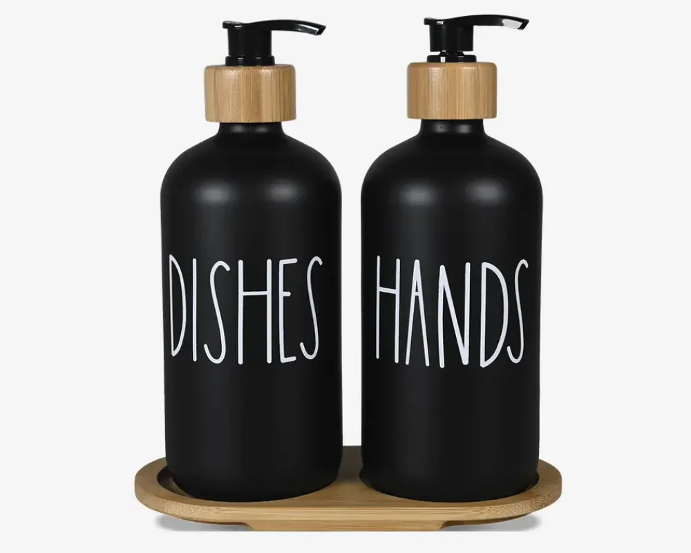 Hold dit køkken organiseret med dette praktiske sæbedispensersæt. Sættet indeholder to beholdere – én til sæbe og én til opvaskemiddel – så du nemt kan holde styr på dine daglige rengøringsrutiner. Beholderne er nemme at genopfylde og sikrer en jævn dosering af sæbe eller opvaskemiddel, så du undgår spild.