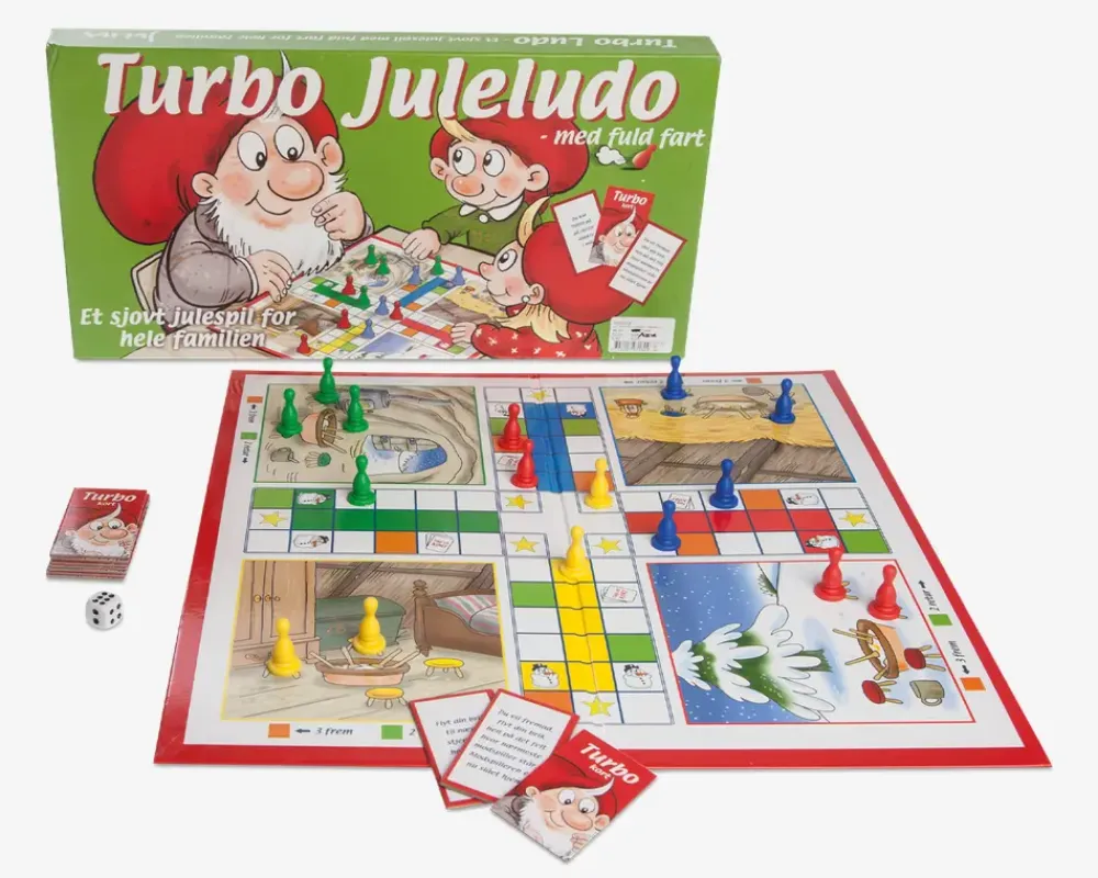 Juleudgave af det klassiske ludo spil. Spillet er perfekt til hyggelige stunder i juledagene med familie og venner. En sjov og festlig aktivitet, der passer til både børn og voksne. Nem at have med og ideel som kalender eller værtindegave.