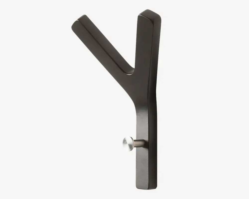 Denne mini Y-knage i formspændt finer er designet af Tom Stepp. Den lille knage har et minimalistisk og elegant design, der tilføjer et stilfuldt og moderne touch til dit rum. Med tre muligheder for at hænge tøj op, kan du nemt organisere dine yndlingsjakker, tasker eller tilbehør på en pladsbesparende måde. Knagen er lavet af holdbar finer og er let at installere, så du kan nyde dens praktiske funktion og smukke design på ingen tid. Brug den i entreen, soveværelset eller badeværelset for at holde dit tøj og tilbehør organiseret og let tilgængeligt. Denne mini Y-knage i formspændt finer er en smuk og funktionel tilføjelse til ethvert rum i dit hjem.• Mål i cm: H.21 x B.14 x D.7• Farve: Sort• Inkl. skruer og rawplugs. Vær opmærksom at disse er universale.
