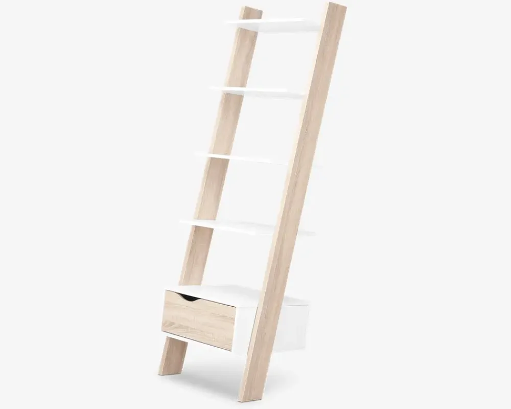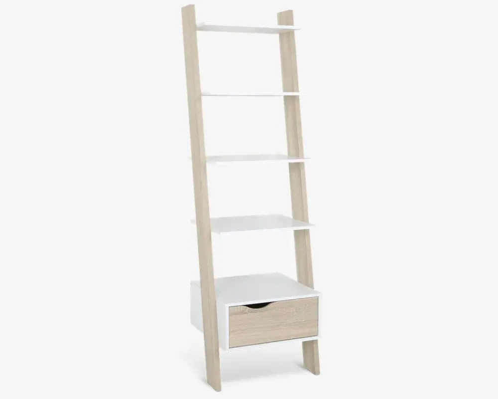 Smart skråreol i et let og elegant design. Hylder i hvid og vanger i eg kunstfiner. Den flotte farvekombination gør at det kan passe ind alle steder. I stuen, på børneværelset, ja alle steder hvor der er behov for lidt afsætningsplads. Leveres usamlet, men samles let.Reolen er en del af en stor serie af møbler, som har et moderne og smart udtryk, serien er fremstillet i rengøringsvenlige materialer, og kan både som enkelt møbel og som serie stå som et frisk pust til indretningen. Se hele det store udvalg af Delta møbler her eller i en af vores møbelhuse.• Let og elegant design• 1 stor skuffe• Rengøringsvenlige materialer• Leveres usamlet men samles let• Mål i cm. H.180 x B.55 x D.48