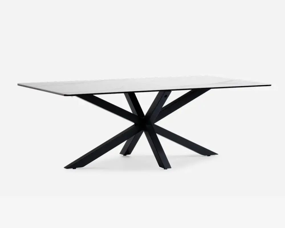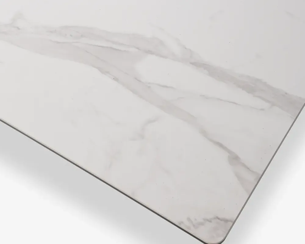Elegant og moderne sofabord med glasplade som har en overflade som er lavet af keramik i hvid. Det har den fordel at bordet er meget modstandsdygtig overfor varme og væsker. Det er næsten umuligt at ridse og så kræver det ingen vedligeholdelse. Man tørrer blot bordet af med en opvredet klud. Og som en sidegevinst er det et naturprodukt som er 100% genanvendeligt. Bordet har et smart understel som er med til at give bordet det moderne udtryk. Stellet er sortlakeret metal. Der findes også et spisebord som har samme type bordplade og understel. Bordet leveres usamlet, men samles nemt.• Elegant og moderne sofabord• Glasplade med keramik overflade• Sortlakeret metalstel• Modstandsdygtig overfor varme og væsker• Leveres usamlet, men samles nemt• Mål i cm. L.130 x B.70 x H.45