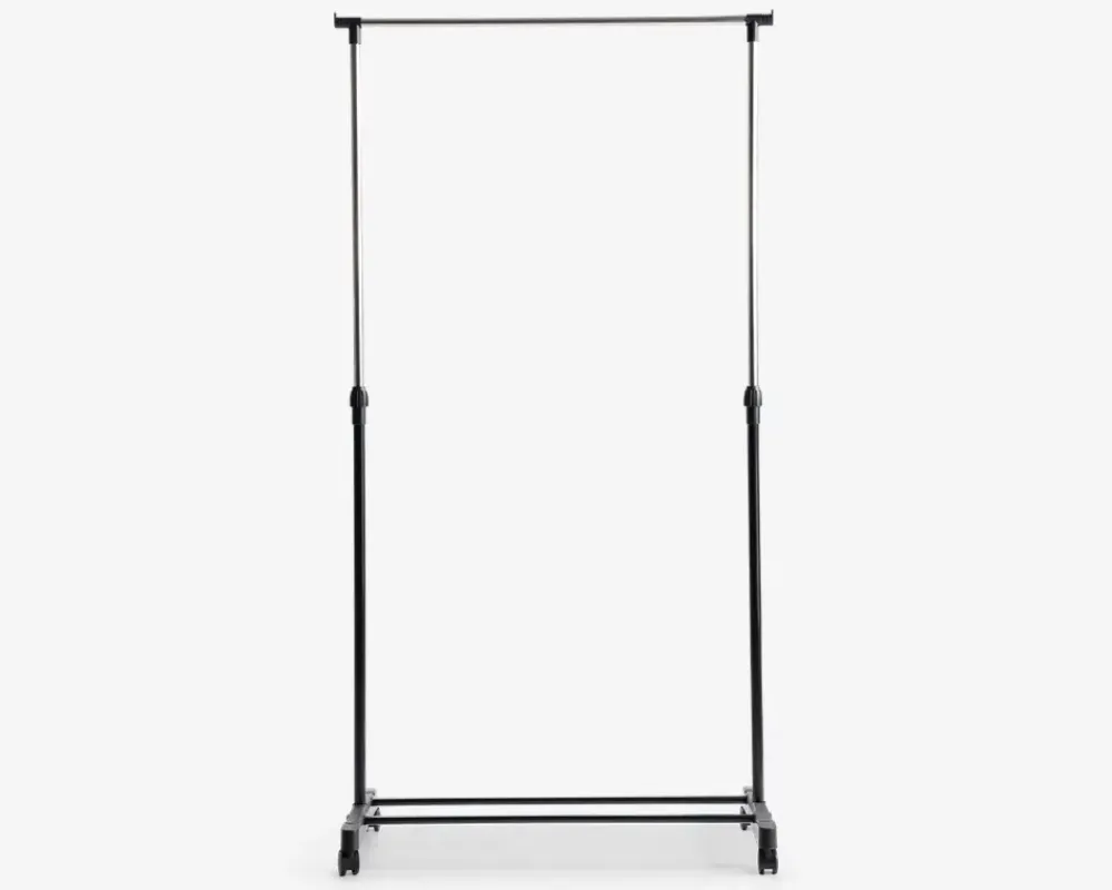 Smart tøjstativ i rustfrit stål og plast. Der er plads til opbevaring af tøj på bøjler og det er nemt at folde sammen, så det ikke fylder. Derudover er det justerbart i højden, så det kan tilpasses forskelligt tøj.