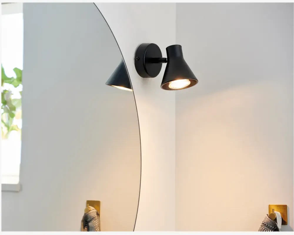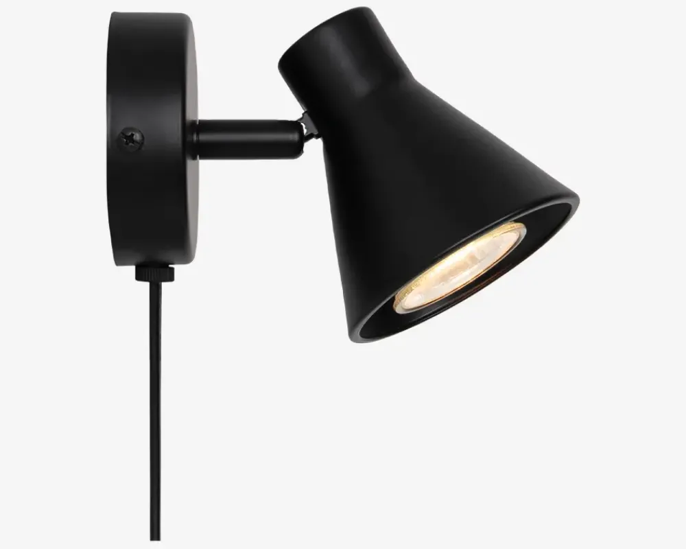 Væglampen Eik fra Nordlux er en stilfuld og moderne lampe, der vil tilføje et elegant touch til dit hjem. Lampens design er enkelt og minimalistisk, hvilket gør den velegnet til mange forskellige indretningsstile. Lampen kan kippes og er derfor ideel som sengelampe eller væglampe i et læsehjørne.• Mål i cm.: H.11 x B.15 x D.12,5-15 x Ø.8,5• Farve: Sort• Ledning med afbryder• Fatning: GU10, maks 35W, ekskl.• Længde på ledning: 200cm