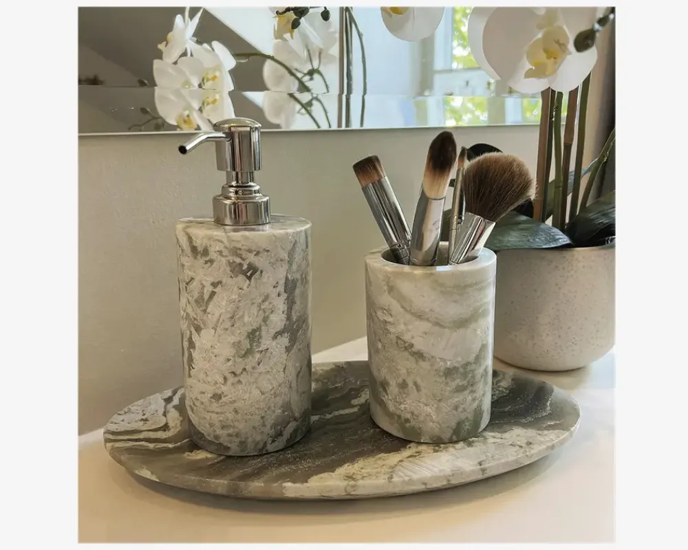 Sale Daells Bolighus Bræt Marmor Grå/Grøn Ovalt L.30,5