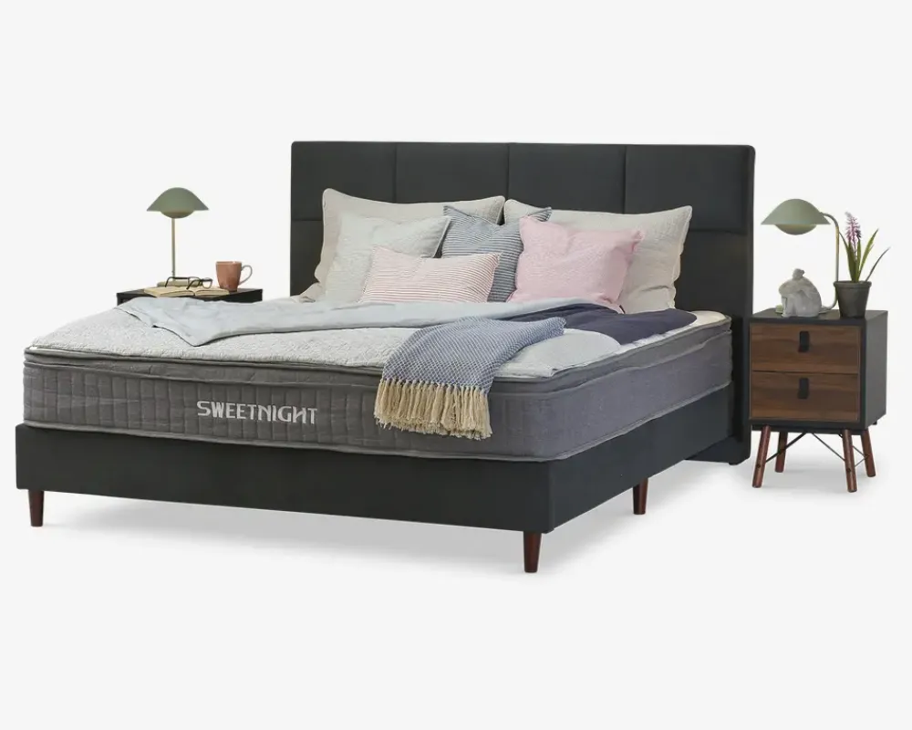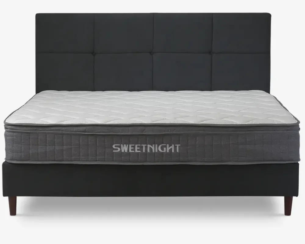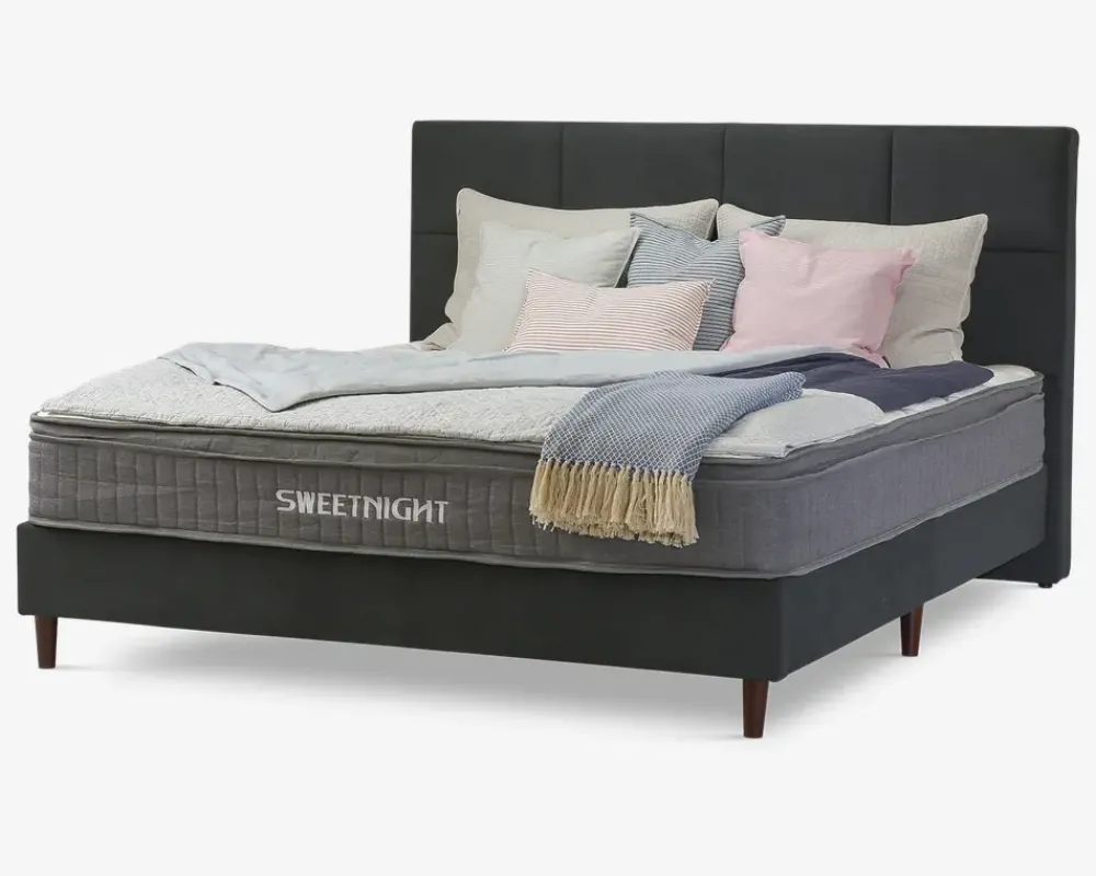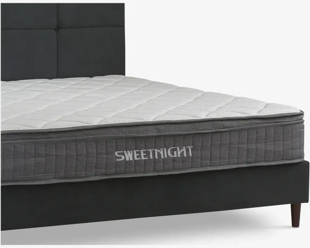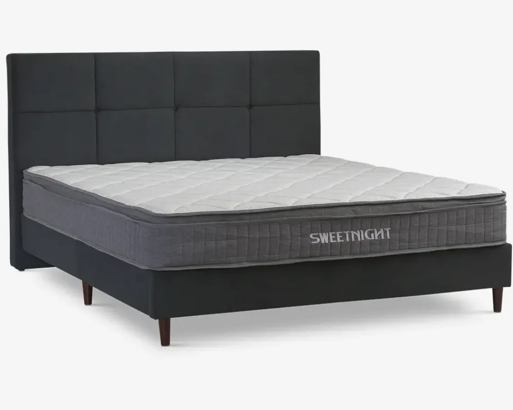 Komplet dobbeltseng inkl. sengeramme og springmadras med fastmonterede topmadras.Sengerammen er fremstillet i spånplade og MDF, og lamelbunden i massiv fyrretræ. Springmadrassen er fremstillet med 210 posefjedre pr. m², som er inddelt i 3 komfortzoner. Madrassen tilbyder en fast liggekomfort, og de 3 zoner sikre at du får ekstra støtte hvor du har størst behov. Den fastmonteret topmadras er fremstillet i 3 cm skum, som understøtter den fast liggekomfort. Betrækket er fremstillet i polyester, og quiltet med fibervat.Sengen leveres adskilt med samles uden problemer. Madrassen er vacuum pakket for at lette transporten, når du åbner de forsejlet pose, vil du opleve at madrassen vi vende tilbage til sin oprindelige form. Der vil gå ca. 24 timer før madrassen yder den optimale støtte til kroppen.Sengen kræver ingen vedligeholdelse, den holdes ren ved støvsugning, alternativt aftørring med en klud vredet op i rent vand. Vi anbefaler at du tilkøber en skånemadras til at ligge under lagnet, både denne måde vil du skåne betrækket og polstringen på madrassen, og dermed forlænge levetiden på den.