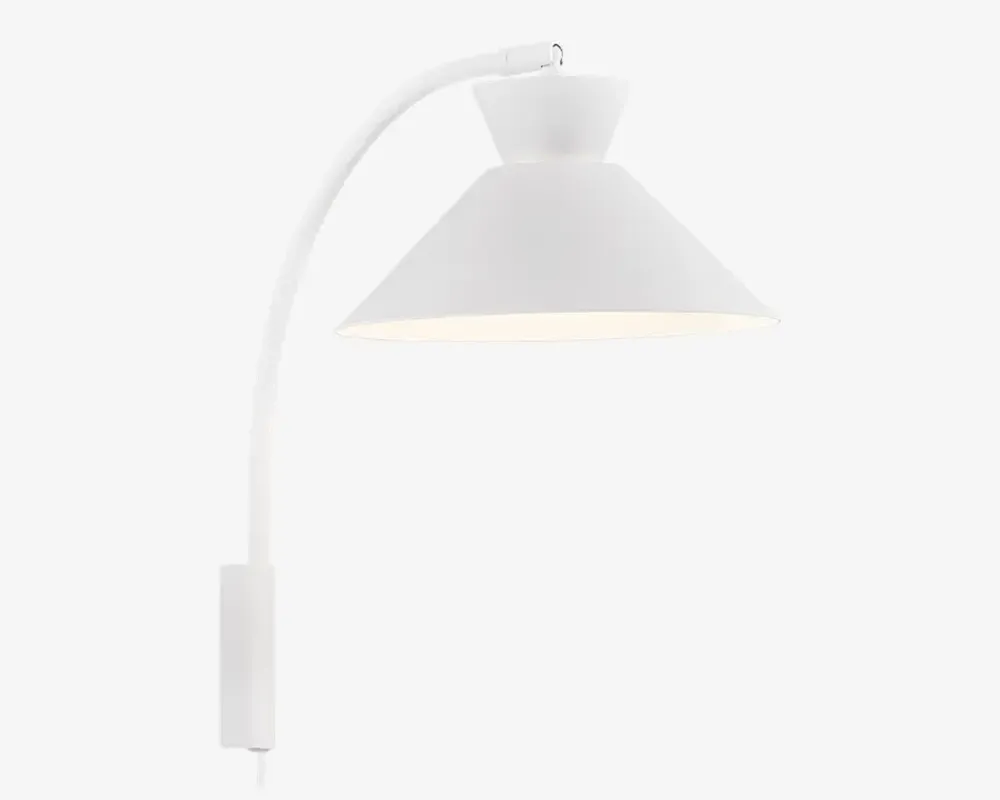 Væglampen Dial der med sit enkle design passer ind i de fleste hjem. Lampen er perfekt som sengelampe eller som læselampe ved sofaen, da den er justerbar. Findes i flere varianter.• Mål i cm: H.40 x B.25• Farve: hvid • Materiale: metal• Fatning: E27, Max 40W• Ledningslængde: 150 cm • IP20• Ekskl. Lyskilde