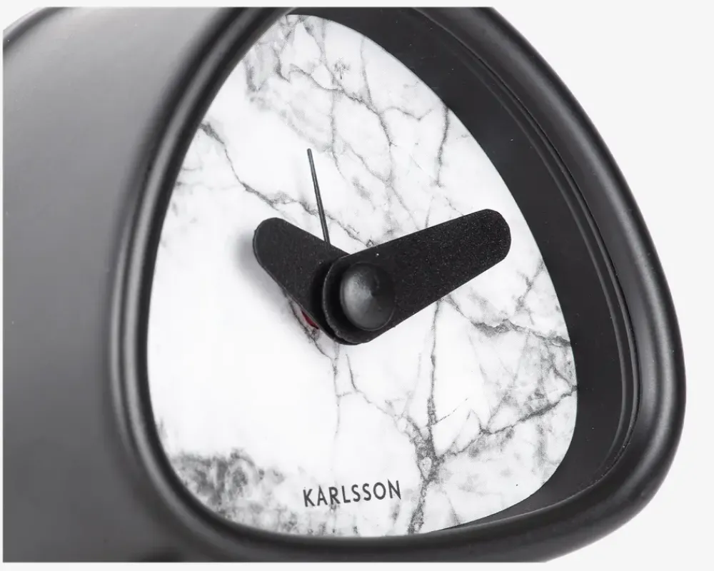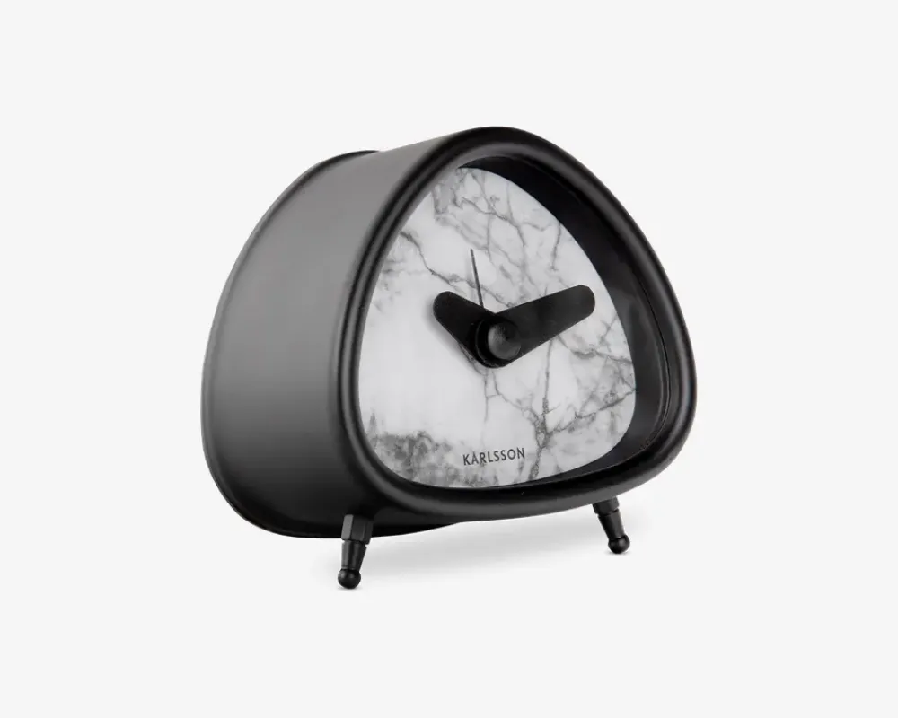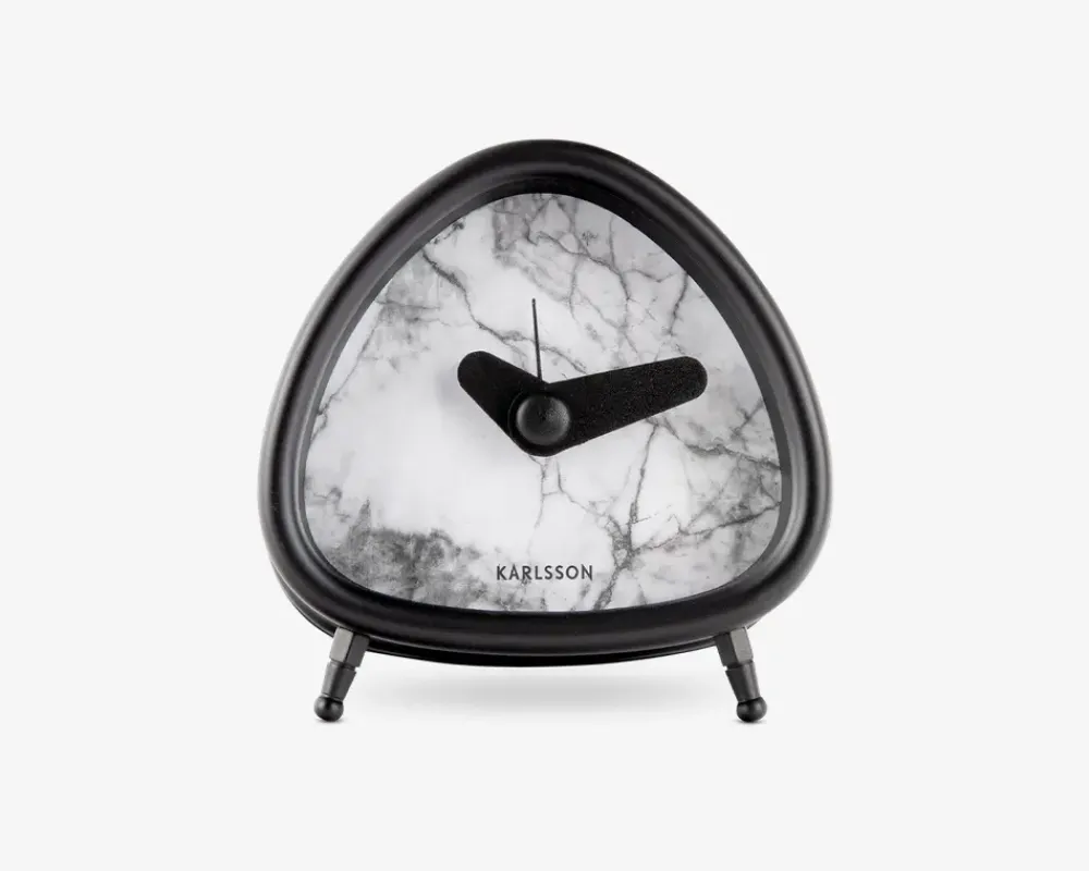 Dette vækkeur fra Karlsson kombinerer tidløst design med moderne funktionalitet. Med sit elegante marmorlook i hvid eller sort og unikke trekantede form, bringer uret både stil og praktisk anvendelighed til ethvert rum. Den lyse, sofistikerede finish gør det ideelt til at passe ind i både moderne og klassiske indretninger.Vækkeuret har en enkel og effektiv alarmfunktion, der sikrer, at du altid vågner til tiden. Den kompakte størrelse gør det perfekt til natbordet, mens det marmorerede look tilføjer et luksuriøst touch til dit hjem.