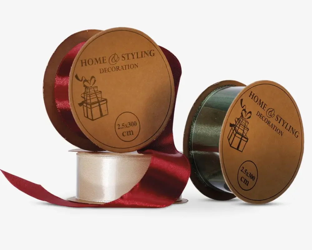 Dekorativt bånd i polyester med en længde på 300 cm. Velegnet til gaveindpakning, kreative projekter eller som pynt på juledekorationer og kranse. Nem at forme og arbejde med og er perfekt til både hobby og festlig indretning.