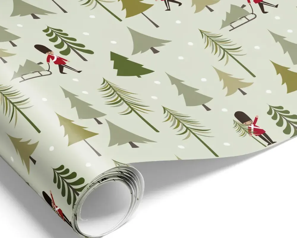 Grønt gavepapir med juletræer. Rullen måler 10 meter og er ideel til indpakning af årets julegaver. Papiret giver dine gaver et hyggeligt udtryk og passer perfekt under juletræet eller i gavekurve.