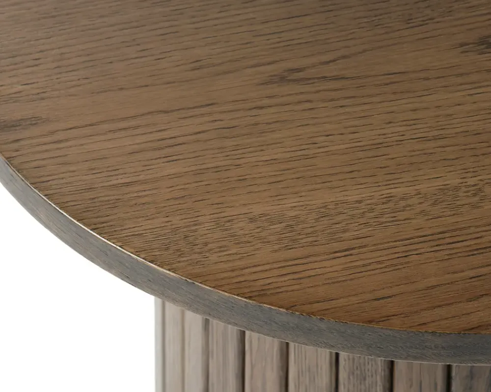 Smart hjørnebord i et klassisk og eksklusivt design. Bordets runde former og flotte træstruktur giver dette bord et naturligt udtryk som passer rigtig godt ind i din boligindretning. Bordet fås som her i røgfarvet eg finer, i naturfarvet eg og i sortlakeret eg finer og som et stort sofabord, selvfølgelig også i alle 3 farver. Så kan man virkelig skabe en smuk og iøjnefaldende indretning i stuen. • Smukt og klassisk design• Røgfarvet eg finer• Lamellook i soklen• Leveres usamlet men samles nemt• Mål i cm. DIA.Ø-50 x H.55