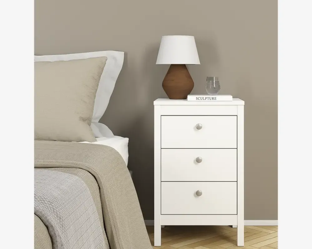Best Daells Bolighus Sengebord Madrid hvid med 3 skuffer