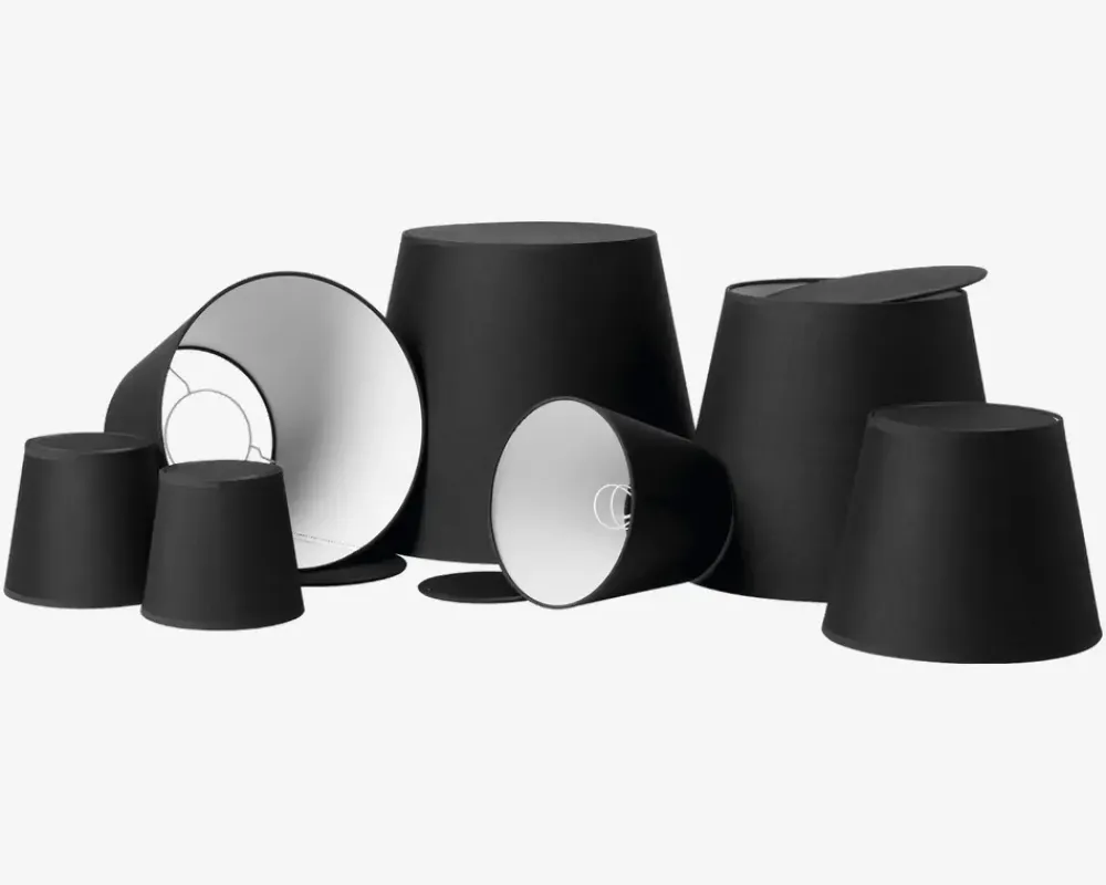 Flot Emma Domus lampeskærm i stof og med aftageligt låg i toppen af skærmen. Låget kan tages af så lyset bedre kan komme ud i rummet, eller man kan beholde låget på for at afdæmpe lyset og derved skabe en mere hyggelig stemning.