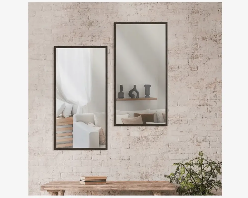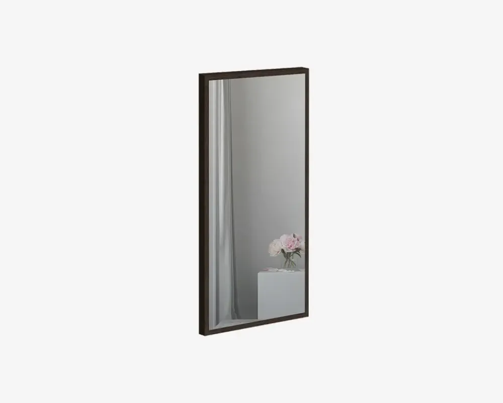 Spejl med en smal ramme i røget eg, der tilføjer et enkelt udtryk til din indretning. Den mørke træfinish giver spejlet et eksklusivt look, der passer perfekt i både soveværelset, entreen eller stuen. Kan skabe en følelse af rummelighed og lys i hjemmet, samtidig med at det fungerer som en dekorativ detalje.