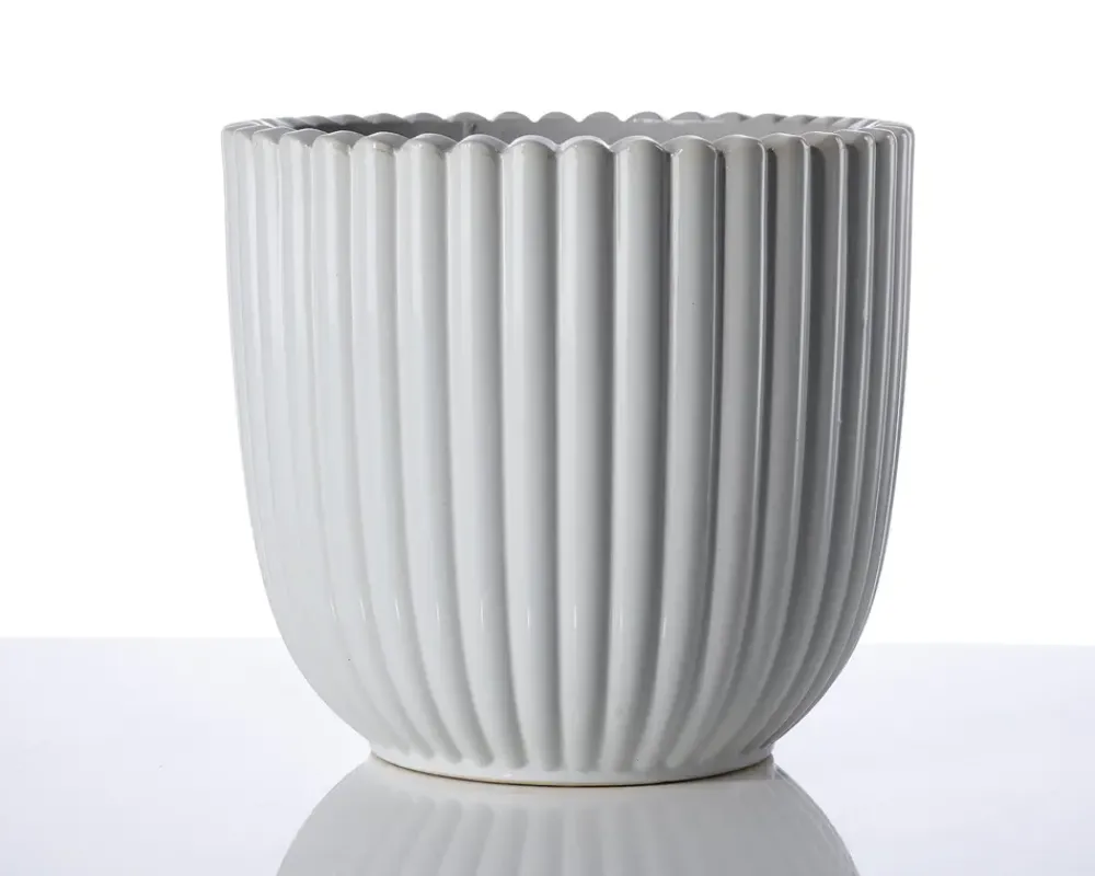 Urtepotteskjuler i serien Nobel i hvid keramik. Skjuleren har et enkelt design, der passer ind i både moderne og klassiske hjem. Perfekt til at fremhæve dine planter i vindueskarmen, på hylden eller bordet.Vær opmærksom på at der kan dannes kondens under potten efter påfyldning af vand, og dette kan skade underlaget. Vær derfor ekstra opmærksom på dette ved sarte og skrøbelige overflader.
