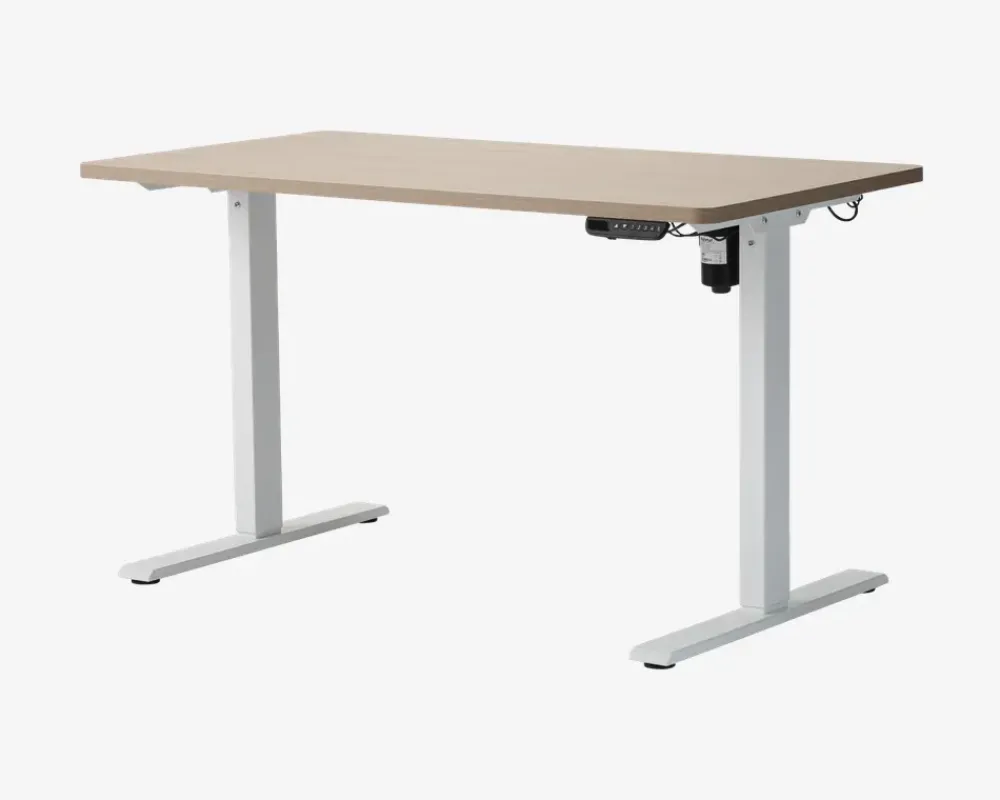 Smart hæve/sænkebord i en god kvalitet. Bordpladen er i slag og ridsefast melamin, stellet er i lakeret metal og løfter uden problemer 80 kg. I betjeningspanelet er der 4 memory taster, hvor der kan indtastes forskellige indstillinger, så hele familien kan få lige nøjagtig den helt rigtige ergonomiske indstilling.Bordet er højdejusterbart fra 72 cm til 120 cm. Skrivebordet leveres usamlet, men samles nemt. Bordplade leveres i flere farver, hvid, sort og eg. Stellet fås i hvid og sort. Dermed kan der opnås lige præcis den farvesammensætning som passer for dig.• Smart hæve/sænkebord• Memory funktion i betjeningspanel• Højdejusterbart fra 72 til 120 cm• Løfteevne max. 80 kg.• Leveres usamlet men samles let.• Mål i cm. B.130 x D.70 x H. 72-120