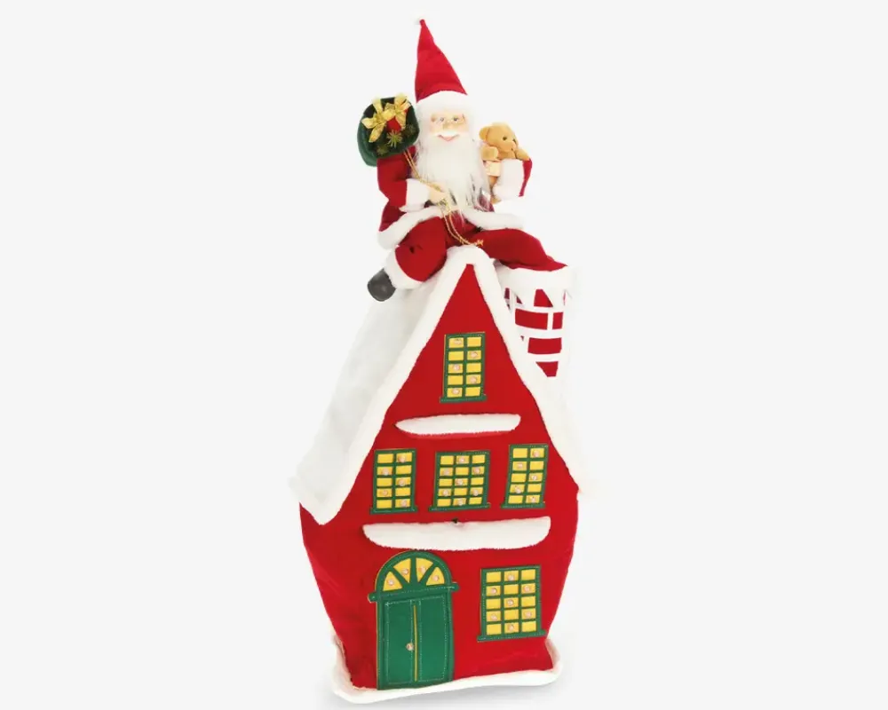 Julemand på hus med LED-lys der har en højde på 105 cm. Figuren er fremstillet i en kombination af polyester og metal og er fyldt med fine detaljer og varme lys, der skaber en hyggelig og festlig stemning. Husk at tilkøbe 3xAAA batterier. Forventet hjemme i uge 45.
