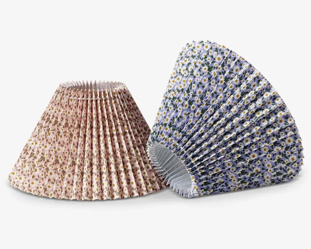Plissélampeskærm af plastik, som vil skabe liv og hygge i hjemmet, da skærmen har et fint marguerit blomsterprint.