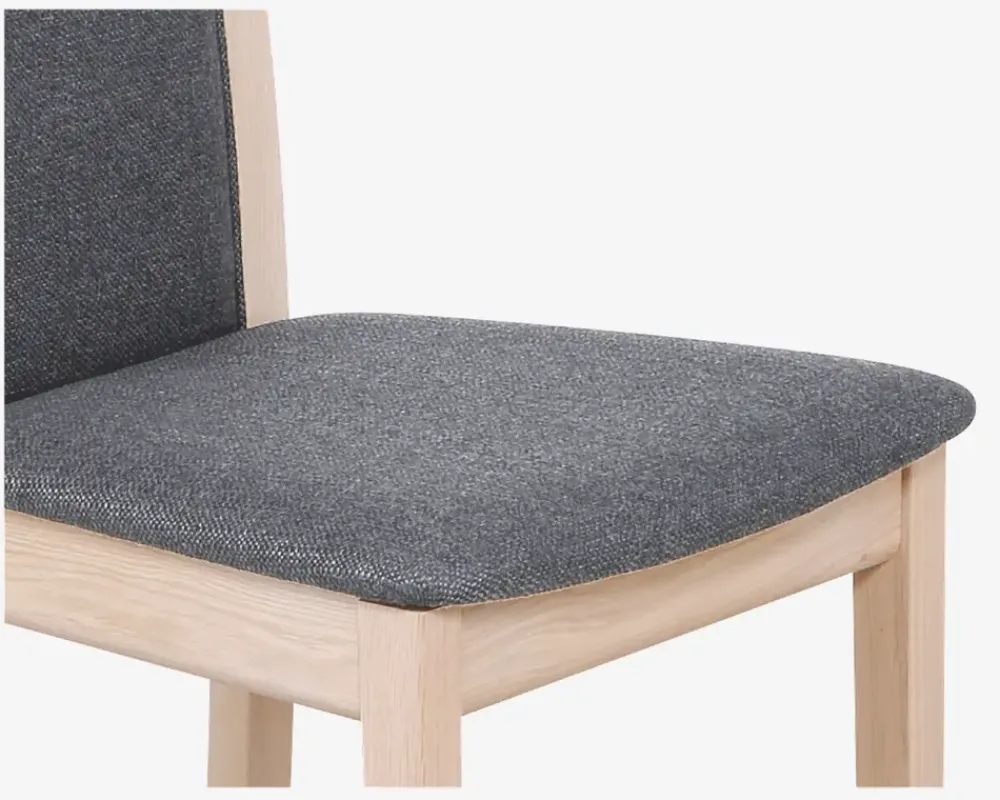 Her tilbyder vi dig et sæt bestående af et spisebord i massiv hvidolieret eg, med 2 tillægsplader i fineret hvidolieret eg, samt 6 spisestuestole i slidstærkt møbelstof. Spisebordet måler B.100 x L.165 cm men kan udvides til en længde på 265 cm, med de to medfølgende tillægsplader, som når de ikke er i brug kan opbevares i et magasin i bordet, så du altid har dem inden for rækkevidde.Bordet er fremstillet i massiv hvidolieret eg, mens de to tillægsplader er i fineret hvidolieret eg, bordet har synkronudtræk, hvilket gør det til en leg at trække bordet ud og ligge tillægspladerne i. Stolene giver med sin halvhøje ryg, og faste polstring en behagelig og støttende siddekomfort, som du vil glæde dig over, når middagen trækker ud i selskab med familie og venner. Møblerne er fremstillet hos den danske møbelproducent Skovby Møbelfabrik. Skovby Møbelfabrik har produceret kvalitetsmøbler til spisestuen siden 1933, og udmærker sig ved at alle deres møbler er fremstillet efter gamle håndværksmæssige værdier. Materialerne der bliver brugt hos leverandøren er special udvalgte, og sammen med en passion og en dygtig medarbejderstab fremstiller de spisestuemøbler som bliver solgt i hele verden. Her får du møbler som du vil have glæde af i mange år frem over.• Polstring i 100% Polyester • Mål på bord i cm.: H.73 x B.100 x L.165 • Udslået mål i cm.: B.100 x L.265 • Mål på stol i cm: H.95 x B.47 x D.56 • Sædehøjde: 46 cm• Bord leveres usamlet, stole leveres samlet