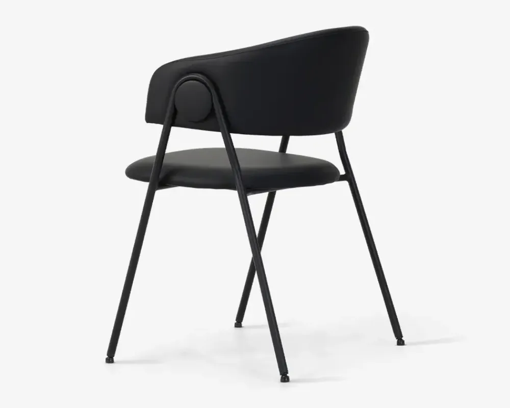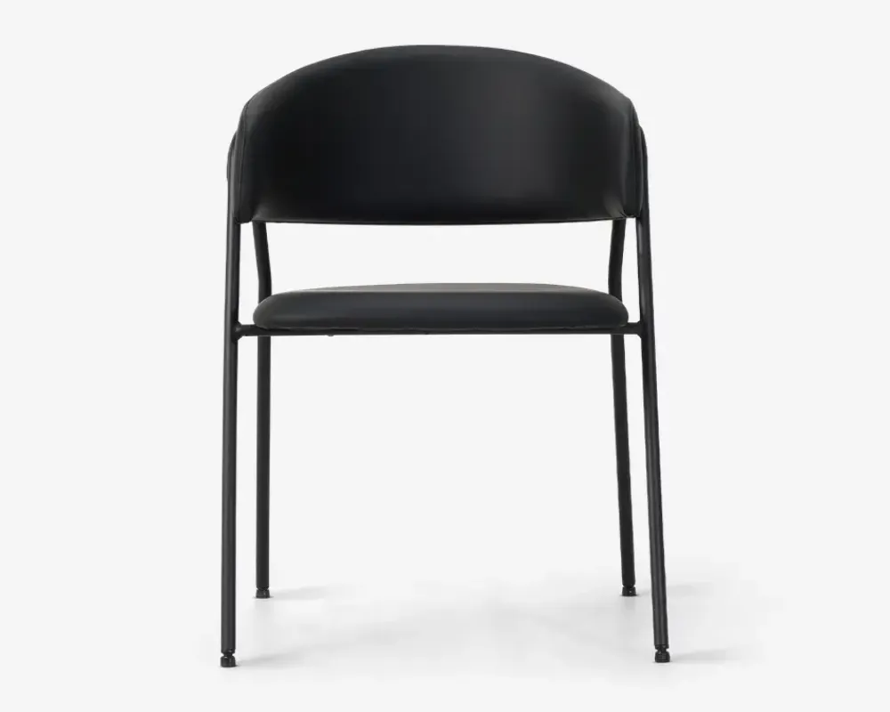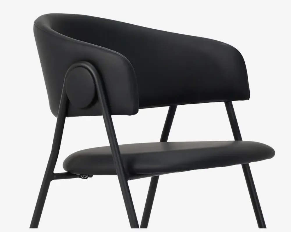 Leder du efter en spisebordsstol i høj kvalitet med en fremragende siddekomfort og et moderne design, er dette måske stolen du leder efter. Spisestuestolen passer både sammen med et meget moderne spisebord, og et klassisk langbord i eg, uanset hvilket du vælger vil stolen fremstå flot sammen med. Stolen har en god bredde, og ryglænet sidder det rigtige sted i forhold til lænden, så det er en spisestuestol som man uden problemer kan sidde i, hele aftenen.Spisestolen er fremstillet med søde og ryg i sort kunstlæder, mens stellet er fremstillet i sort pulverlakeret stål. Spisestuestolen kræver ingen vedligeholdelse, og aftørres med en klud vredet op i rent vand. Stolen sælges i pakker af 2 stk. og leveres samlet.