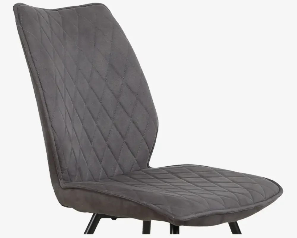 Spisebordsstol i kraftig mørke grå mikrofiber, med en fantastisk siddekomfort. Stolen tilbyder med sin kraftige polstring, bløde stof og høje ryg, en virkelig god siddekomfort, som du vil glæde dig over når middagen bliver ekstra hyggelig og trækker ud. Spisestolen sælges i pakker af 2 stk., og det klassiske design, gør den velegnet til eksempelvis langborde som er oppe i tiden, når det gælder om at indrette køkkenet eller spisestuen.Spisebordsstolen kræver ingen vedligeholdelse, du du foretager rengøringen med en klud vredet op i rent vand. Ingen spisestuestole er egnet til at du vipper på dem, det kan skade konstruktionen og ødelægge stole. Stolene leveres usamlet, men samles nemt, hvis du følger den vedlagte samlevejledning.