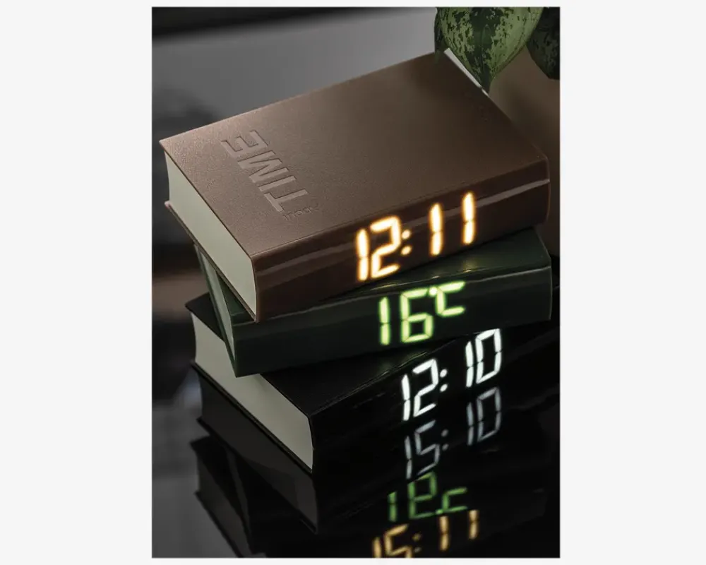 Vækkeur der ligner en bog og som samtidig kan vise klokken. Uret kombinerer funktionalitet med et minimalistisk design, der passer perfekt ind i soveværelset, kontoret eller andre rum i hjemmet. Med et tydeligt ur og pålideligt alarmfunktion hjælper det dig med at starte dagen til tiden. Perfekt til både natbordet og skrivebordet! Husk at tilkøbe 3xAAA batterier. Inklusiv USB kabel.