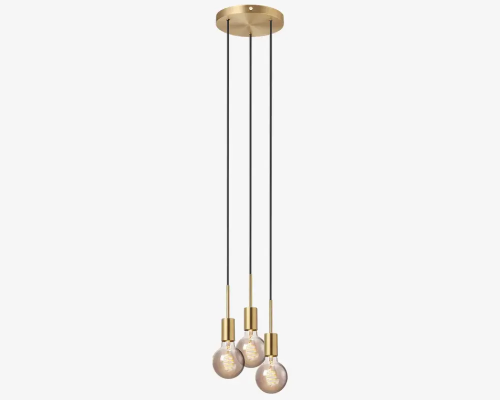 Paco lampeserien består af en serie lamper i enkelt design i sort og messing. Klyngependlen er god i et hjørne, til at skabe en hyggelig belysning. Skab dit eget præg på lampen ved at bruge dekorationspærer.• Mål i cm: H.17,3 x Ø.22,6• Farve: Messing• Materiale: Metal• Fatningstype: E27 max 40W• Ekskl. lyskilder (3 stk.)• IP-kode: IP20• Ledningslænge: 200 cm