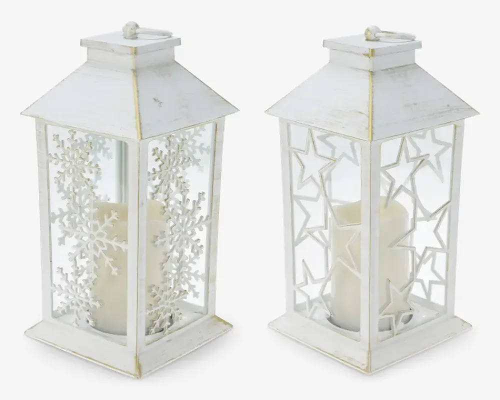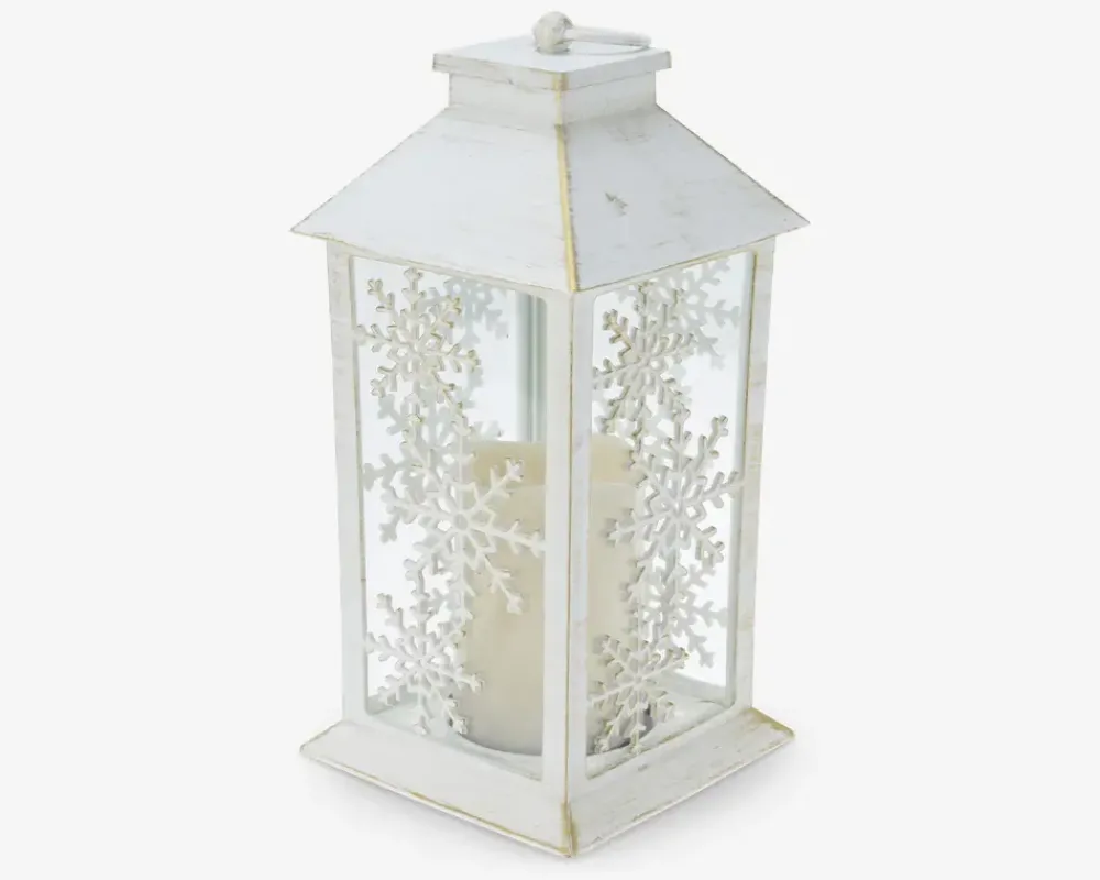 Dekorativ lanterne i hvid med LED-lys. Lanternen har en højde på 28 cm og er pyntet med snefnug som dekoration. Det varme LED-lys skaber en hyggelig stemning uden brug af levende flamme, og lanternen er nem at placere i hjemmet. Husk at tilkøbe 3xAAA batterier. Bemærk at de kommer assorteret, købes enkeltvis og at der ikke kan vælges design ved køb i webshoppen.