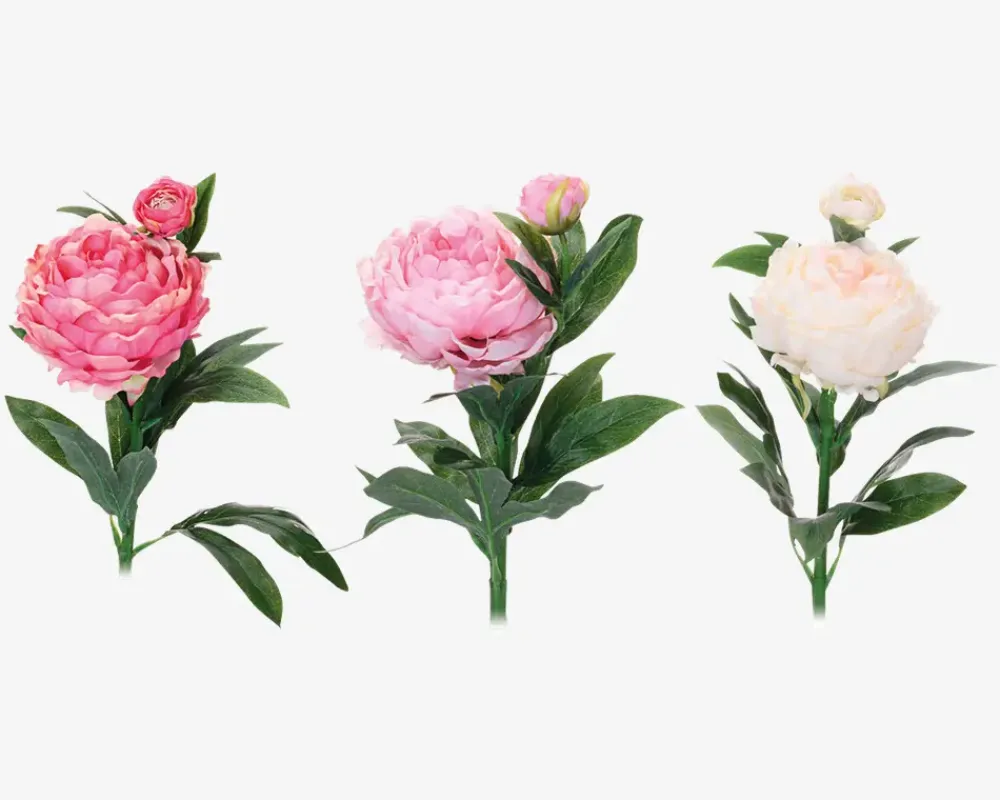 Elegant blomsterstilk med en smuk lyserød pæon. Stilken er lavet af plastik og måler 61 cm i højden. Den er omhyggeligt udformet for at efterligne den naturlige form af en ægte blomst. Kan bruges enkeltvis eller sammen med andre stilke fra vores sortiment.Bemærk at de kommer assorteret, købes enkeltvis og at der ikke kan vælges farve ved køb i webshoppen.