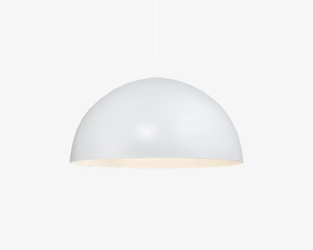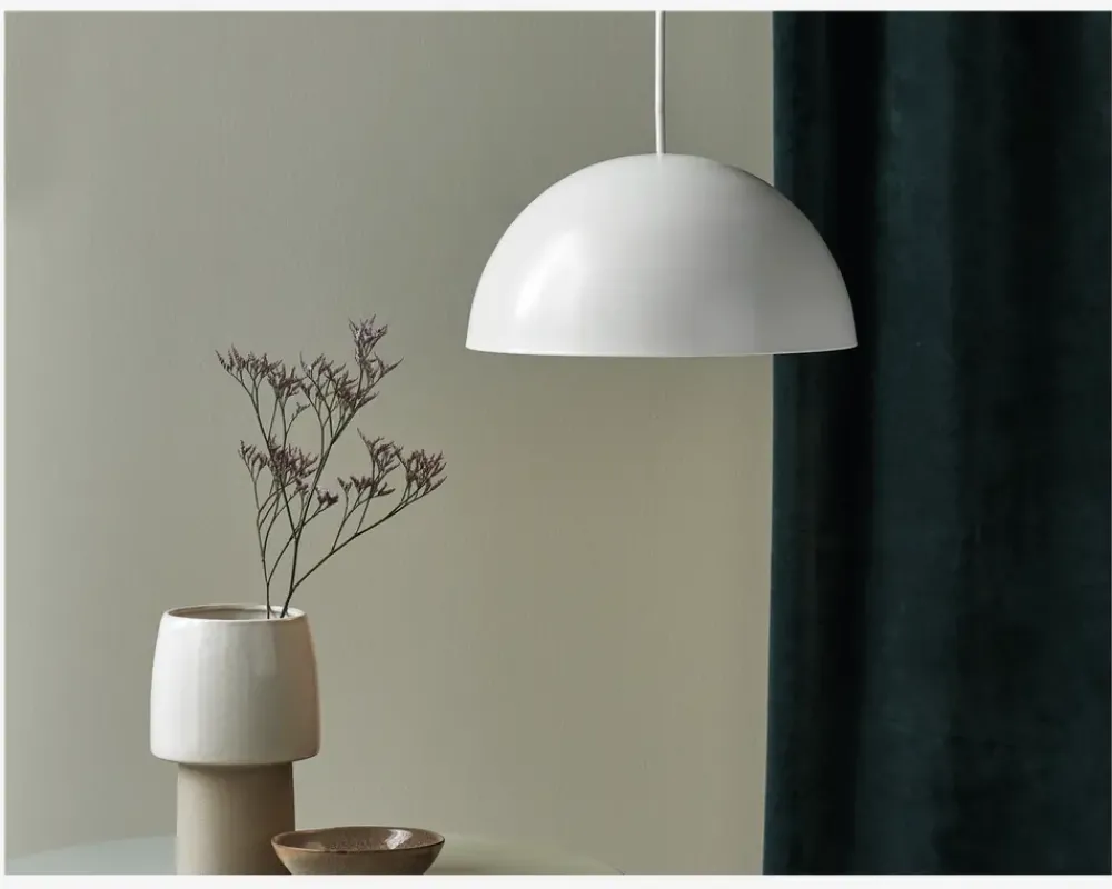 Ellen er et tidsløst og enkelt nordisk design. Det flotte runde kuppelformede look står flot i kontrast til det lette stel og giver hjemmet et bredt og hyggeligt lysfelt. Anvend eksempelvis lampen over spisebordet eller som hyggebelysning i hjørnet over sofaen.Fuldend din indretning med andre lamper fra samme serie.Fås i flere farver.• Mål i cm: Ø.30• Materiale: Metal• Farve: Hvid• Fatningstype: E27 maks 40W• Ledningslængde: 200cm stofledning• Lyskilde: Ekskl. Pære• IP-Kode: IP20