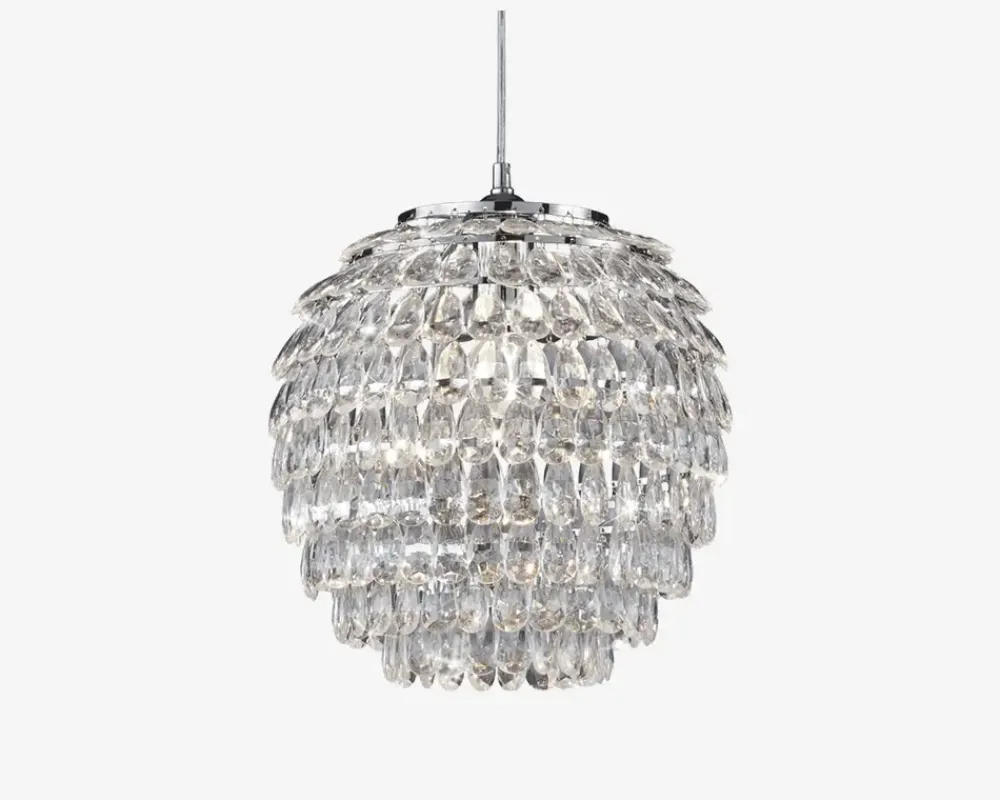 Smuk og elegant Petty pendel med flotte prismer. Prismerne bryder lyset og sender lyset i flere retninger, hvilket giver et flot og hyggeligt lys. • Mål i cm: H.42 x Ø.35• Farve: Klar• Materiale: Metal /Plastic• Fatning: E27 Maks 60W• Ekskl. Lyskilde