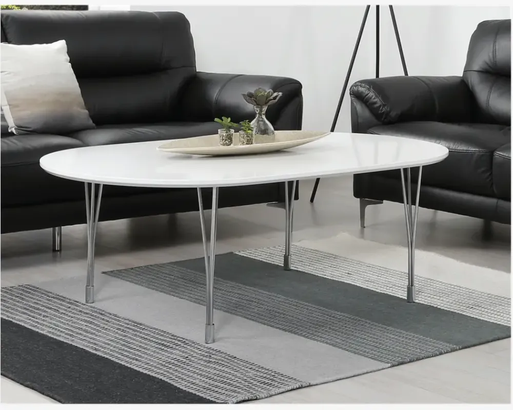 Flot sofabord i et moderne og let design. Hvidlakeret bordplade med 3 tråds ben i metal. Bordet har en flot affaset bordkant som er med til at fremhæve det elegante design. Sofabordet er nemt at vedligeholde med en fugtig klud. Andet skal der ikke bruges.• Moderne og let design• Hvidlakeret MDF• Metalben• Nemt at vedligeholde• Leveres usamlet, men samles nemt• Mål i cm. B.80 x L.140 x H.47