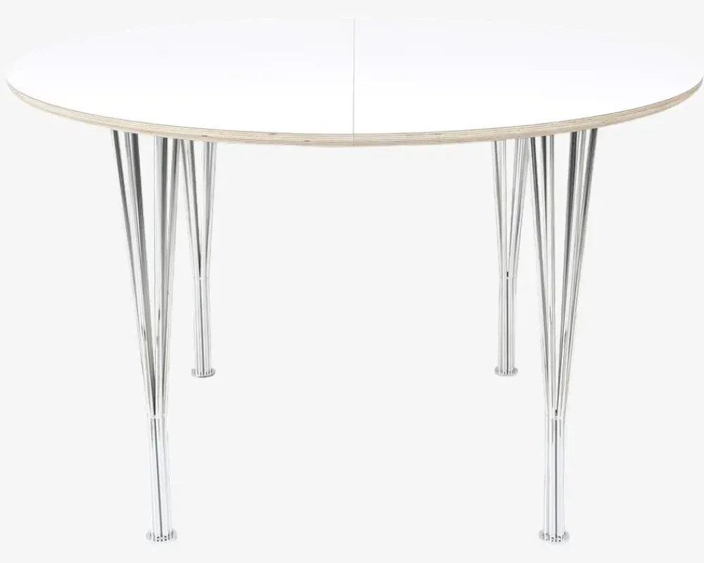Shape® er en bordserie, som Daells Bolighus har udviklet sammen med en af vores dygtige danske leverandører. Du kan selv sammensætte dit bord som du ønsker, og kan vælge bordplader med udtræk, til spiseborde i forskellige størrelser og træsorter, derudover kan du selv vælge om du ønsker træben eller stålben. Bordserien findes desuden også med bordplader uden udtræk som er velegnet som sofabord, idet du også kan vælge benene i sofabordshøjde.Hele serien er dansk produceret i en meget flot kvalitet, og i høj håndværksmæssig kvalitet. Serien fremstår moderne og tidsløs i designet, og uanset om du vælger bordpladen i massiv træ, eller i laminat kan du til købe ekstra tillægsplader. Alle spisebordsplader leveres som standard med udtræk til 2 ekstra tillægsplader.Dette Shape® spisebord er fremstillet med en bordplade i hvid laminat med kanter i krydsfiner, og 6 trådsben i krom. Bordet måler Ø.120 cm og leveres med et udtræk så du har mulighed for at udvide bordet med 2 tillægsplader, så du kan få et bord der måler B.120 x L.210 cm og giver plads til 10-12 spisende personer. Laminat bordpladen giver dig en virkelig holdbar og stærk overflade, den er nem at renholde, idet laminat tåler alle former for rengøringsmidler, så længe de ikke indeholder slibemidler.• Udtræk til 2 tillægsplader• Ekstra tillægsplader varenr. 86368• Mål i cm: H.73 x Ø.120• Leveres usamlet