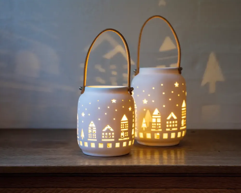 Dekorativ lanterne med LED i hvid. Lanternen har en højde på 13,2 cm og måler 11,3 cm i bredden. Den er udstyret med timerfunktion og inkluderer 3 x LR44 batterier. Er beregnet til indendørs brug og skaber en hyggelig stemning i hjemmet, perfekt som del af jule eller vinterdekorationen.