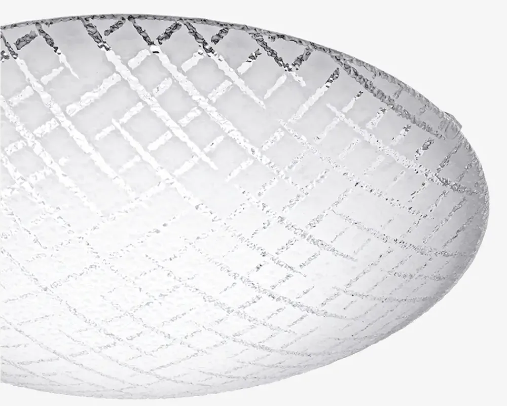 Stilfuld plafond med glasskærm i fint mønster, som giver en flot lyseffekt. Riconto er ideel til entreen, værelset eller i kontoret.Bemærk, at det integreret LED ikke er udskifteligt.