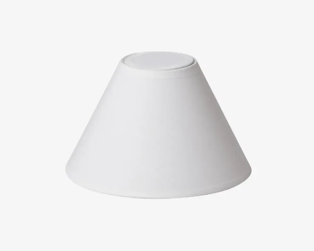 Flot enkelt lampeskærm i hvid med låg. Låget kan tages af, så der kommer mere lys ud i rummet, men kan også sættes på, hvis man ønsker en mere hyggelig belysning i stuen, værelset, kontoret m.m.