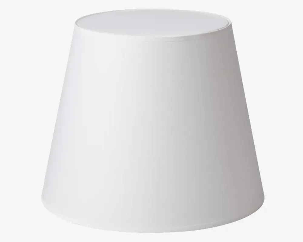 Flot Emma Domus lampeskærm i stof og med aftageligt låg i toppen af skærmen. Låget kan tages af så lyset bedre kan komme ud i rummet, eller man kan beholde låget på for at afdæmpe lyset og derved skabe en mere hyggelig stemning.