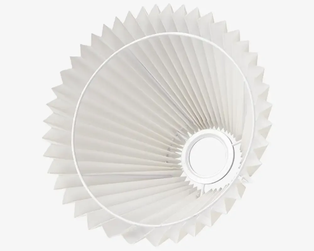 Emma Piso er en lampeskærm i hvid plissé, der tilfører et tidløst og let udtryk til enhver lampe. Den klassiske foldede struktur spreder lyset blødt og behageligt, hvilket skaber en hyggelig stemning i rummet. Skærmen passer perfekt til både bord- og gulvlamper.