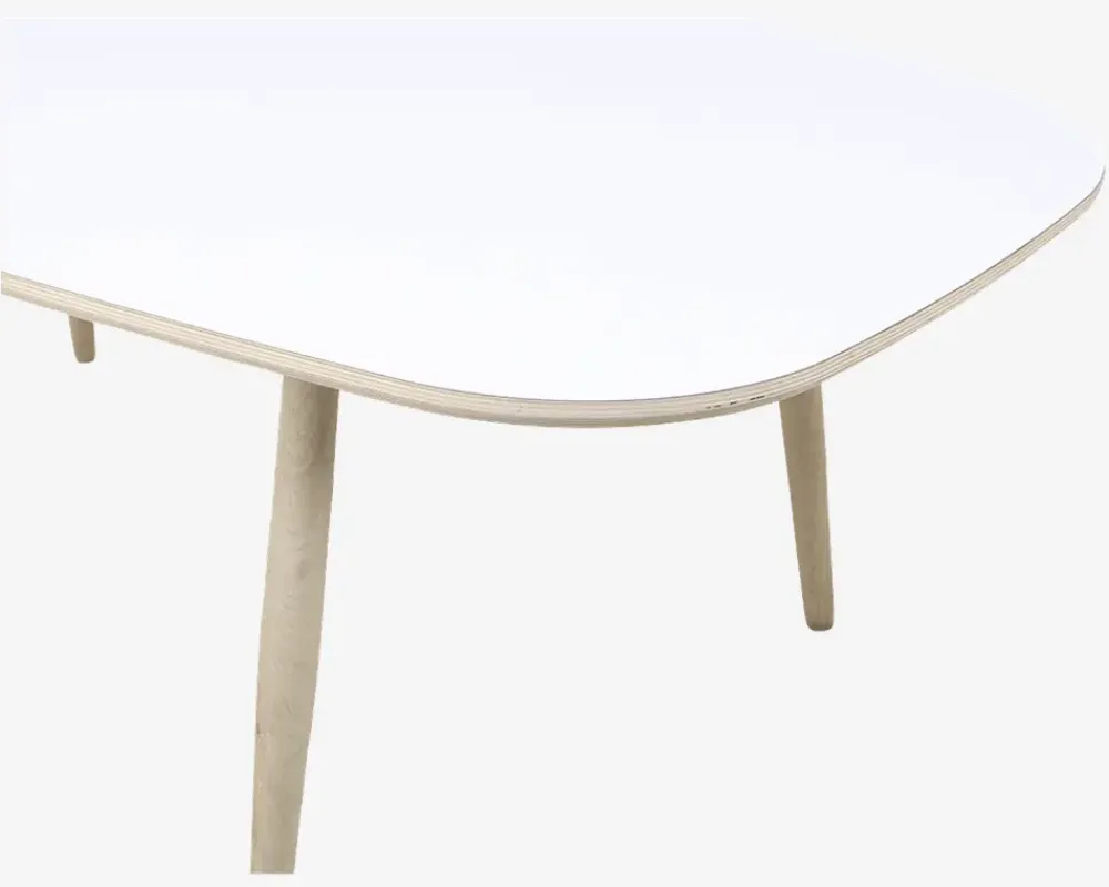 Shape®. Byg selv dit sofabord. Sofaborde i et moderne tidløst design.Du kan selv sammensætte dit sofabord som du vil. Shape® har valgfri bordplade hvor du selv kan vælge mellem massive bordplader i massiv eg eller bøg ubehandlet. Kan også fås i olieret eg eller i røget eg. Eller vælg bordplader med laminat overflader, som enten har en sort kant eller en synlig krydsfiners kant. Det giver bordet et meget moderne look. Der kan frit vælges mellem 3 trådsben, sorte træben-med eller uden alufarvet ”kappe” eller massive ben i ubehandlet bøg eller eg. Ben kan også vælges i olieret eg eller i røget eg. Her vist som sofabord i hvid laminat med krydsfiner kant og med massive ben i bøg. Se iøvrigt prislisten herunder for yderligere information.• Skrå massive ben eller metalben• Massive bordplader eller laminat overflade• Moderne og tidløst design• Leveres usamlet men samles let• Mål i cm: L.135 x B.75 x H.48