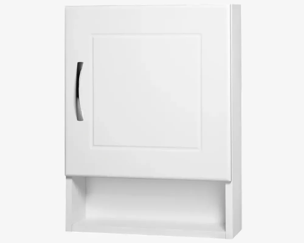 Skal der ryddes op og organiseres på badeværelset er dette flotte skab en god mulighed for at få styr på tingene på badeværelset eller på toilettet. Skabet indeholder hylder, men indeholder også en ekstra hylde under skabet så de ting du altid har brug for, er lige ved hånden. Skabslågen er med softclose, hvilket gør at lågen ikke kan smække i.