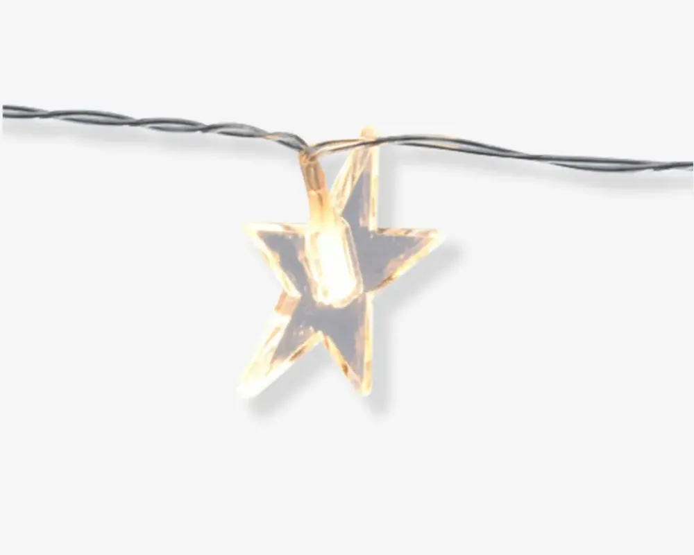LED lyskæde som er perfekt til at skabe en hyggelig stemning i dit hjem. Lyskæden er med varme hvide LED dioder som forestiller stjerner. Du kan nemt hænge den op på vægge, vindueskarme eller juletræet for at skabe en smuk belysning.