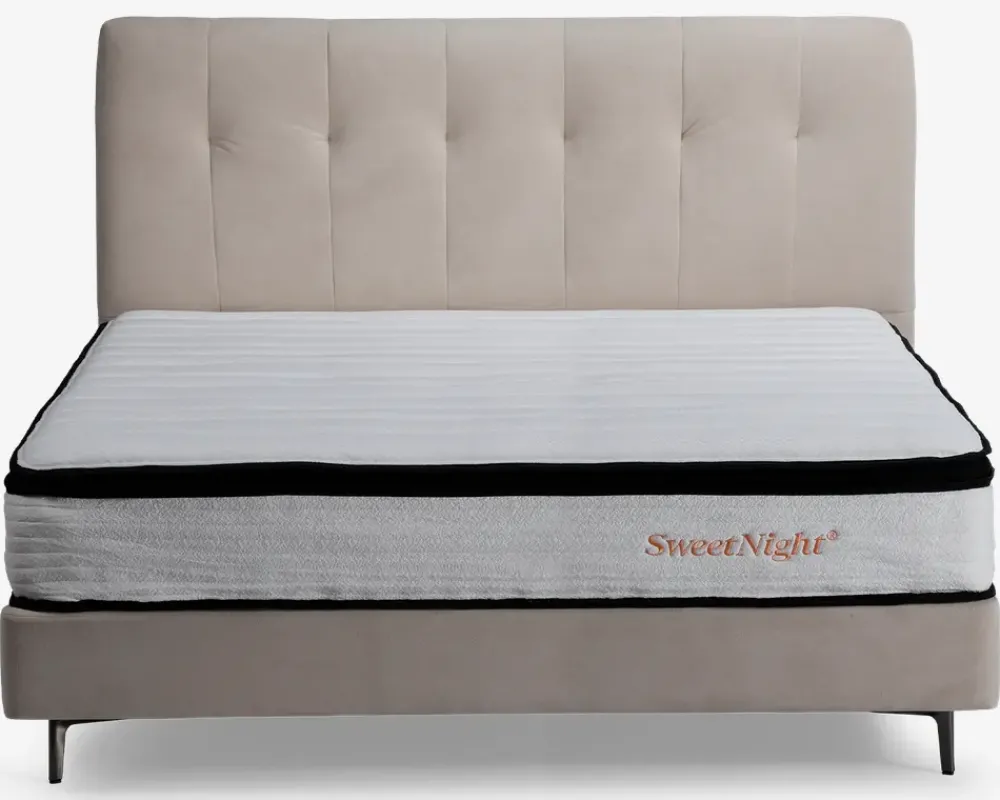 Med denne komplette seng får du en seng som tager sig flot ud i soveværelset. Den lyse beige farve passer godt ind i mange danske indretninger. Sengen bestå af en senge ramme med lamelbund og en springmadras. Springmadrassen indeholder et fjedre system med 230 posefjedre pr. m². Sengen findes som her i 180 x 200 cm, men findes også i 140 x 200 cm.Sengen kræver ingen vedligeholdelse, den rengøres med en støvsuger eller en klud vredet op i rent vand. Solen samles med hjælp fra den vedlagte samlevejledning. Vi anbefaler at I er to om at samle og flytte sengen, på den måde undgår du skader på produktet og på dit gulv.